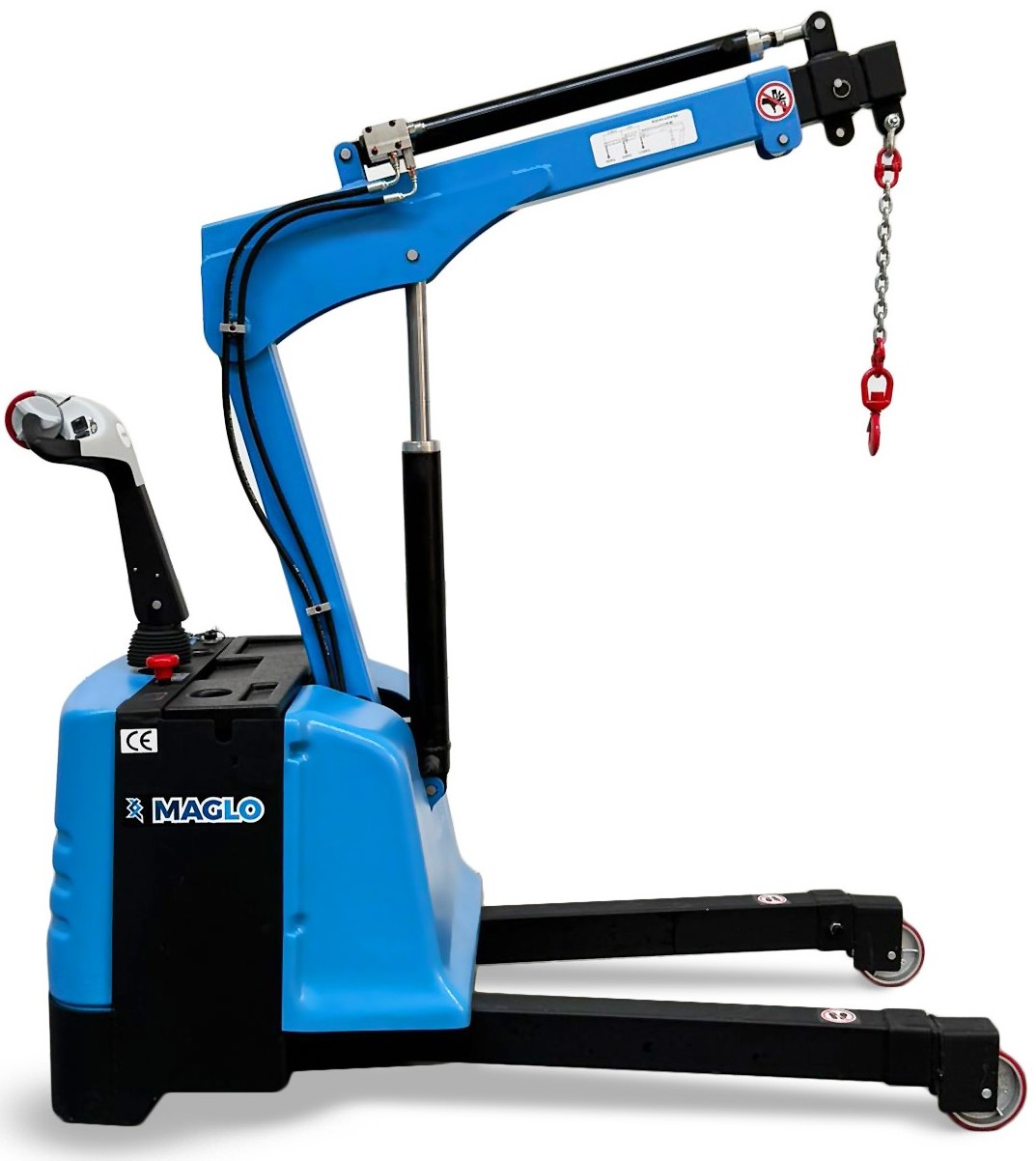 Elektryczny żuraw samojezdny Maglo MZE12T jest w pełni napędzany elektrycznie, co sprawia, że przenoszenie ładunków staje się szybkie, łatwe oraz bezpieczne. Napęd 24 V DC umożliwia wykonywanie ciężkich prac. Ergonomiczny uchwyt zawiera łatwą w obsłudze przepustnicę z nieograniczoną regulacją prędkości do przodu i do tyłu.