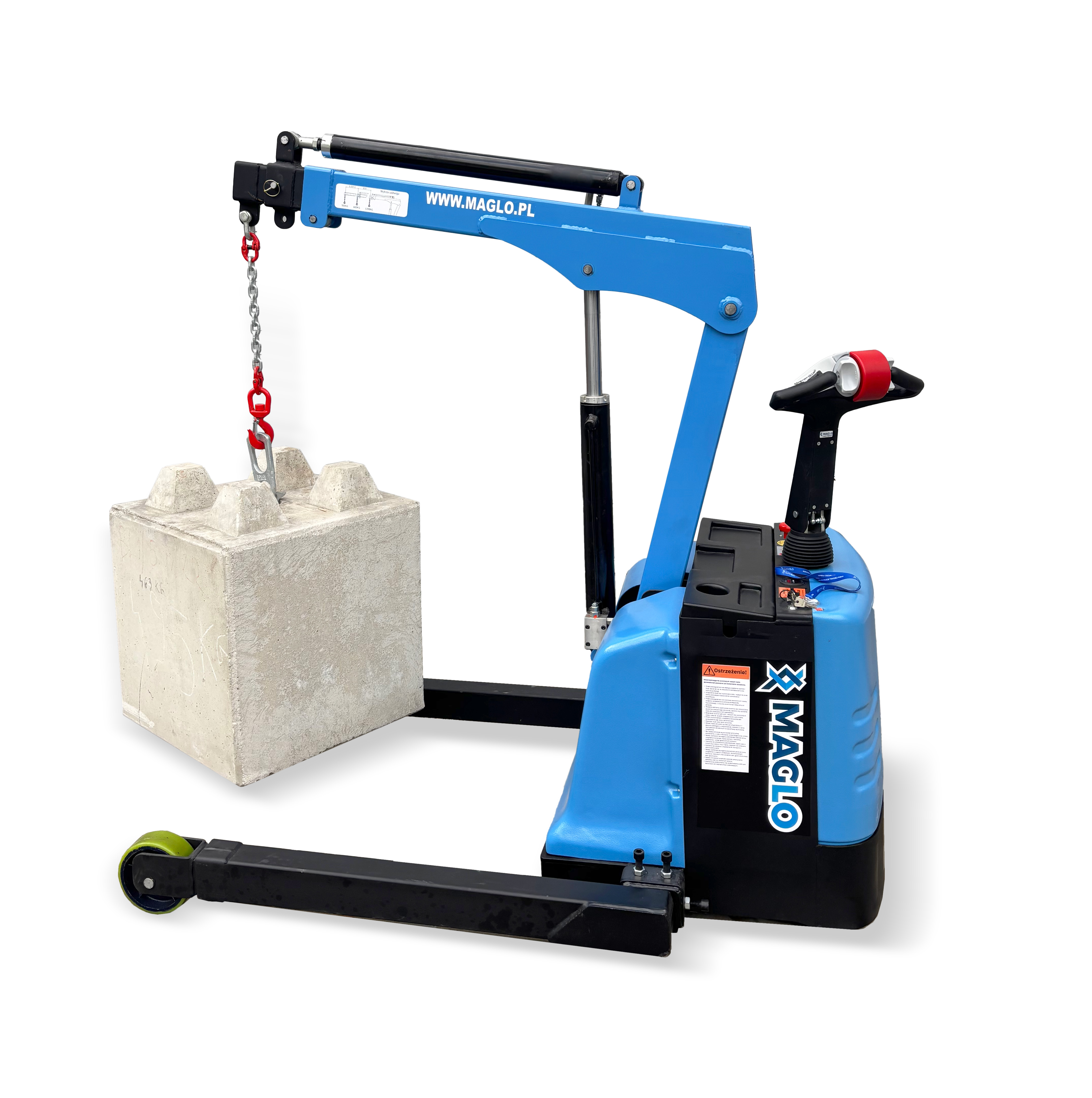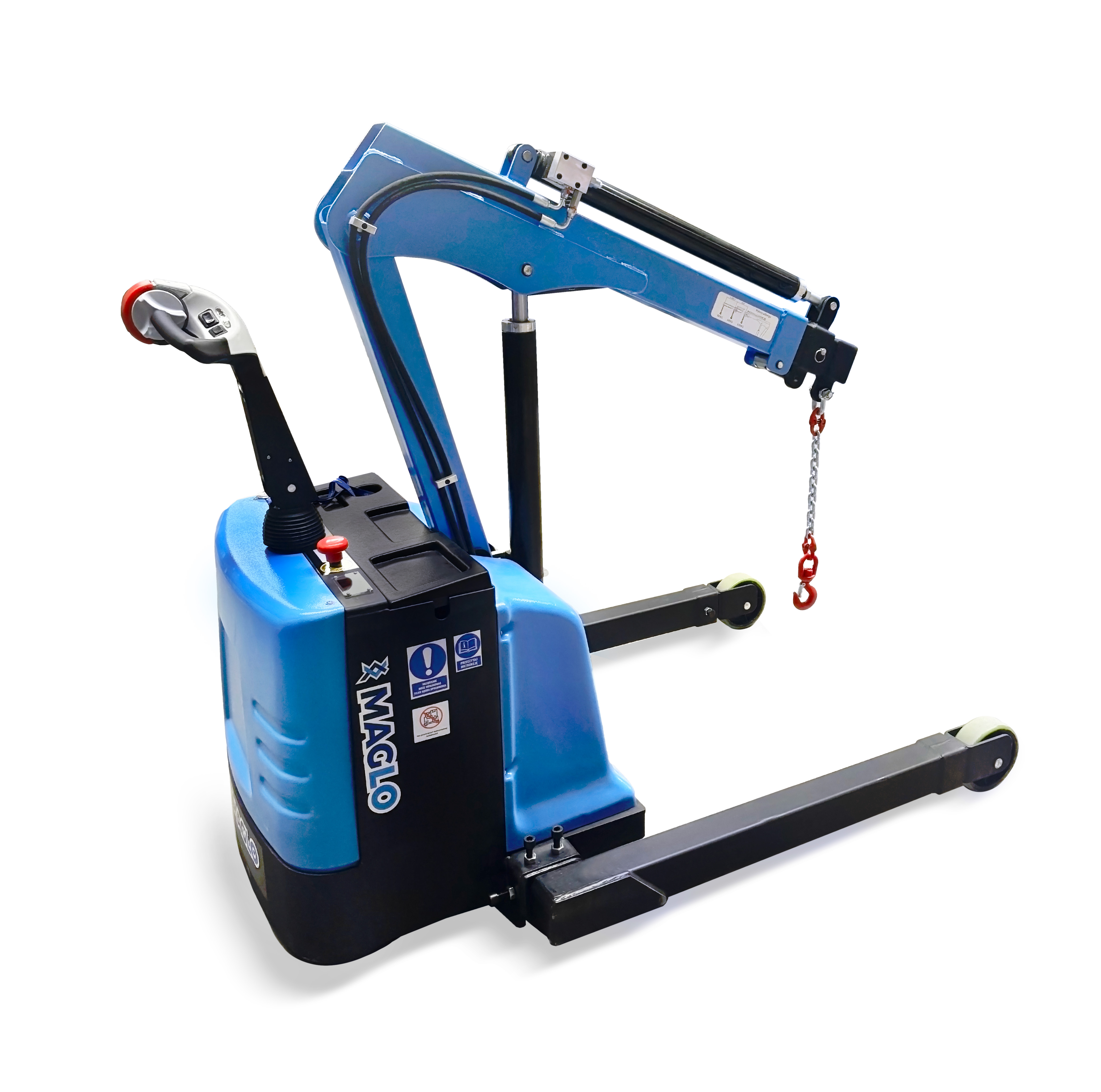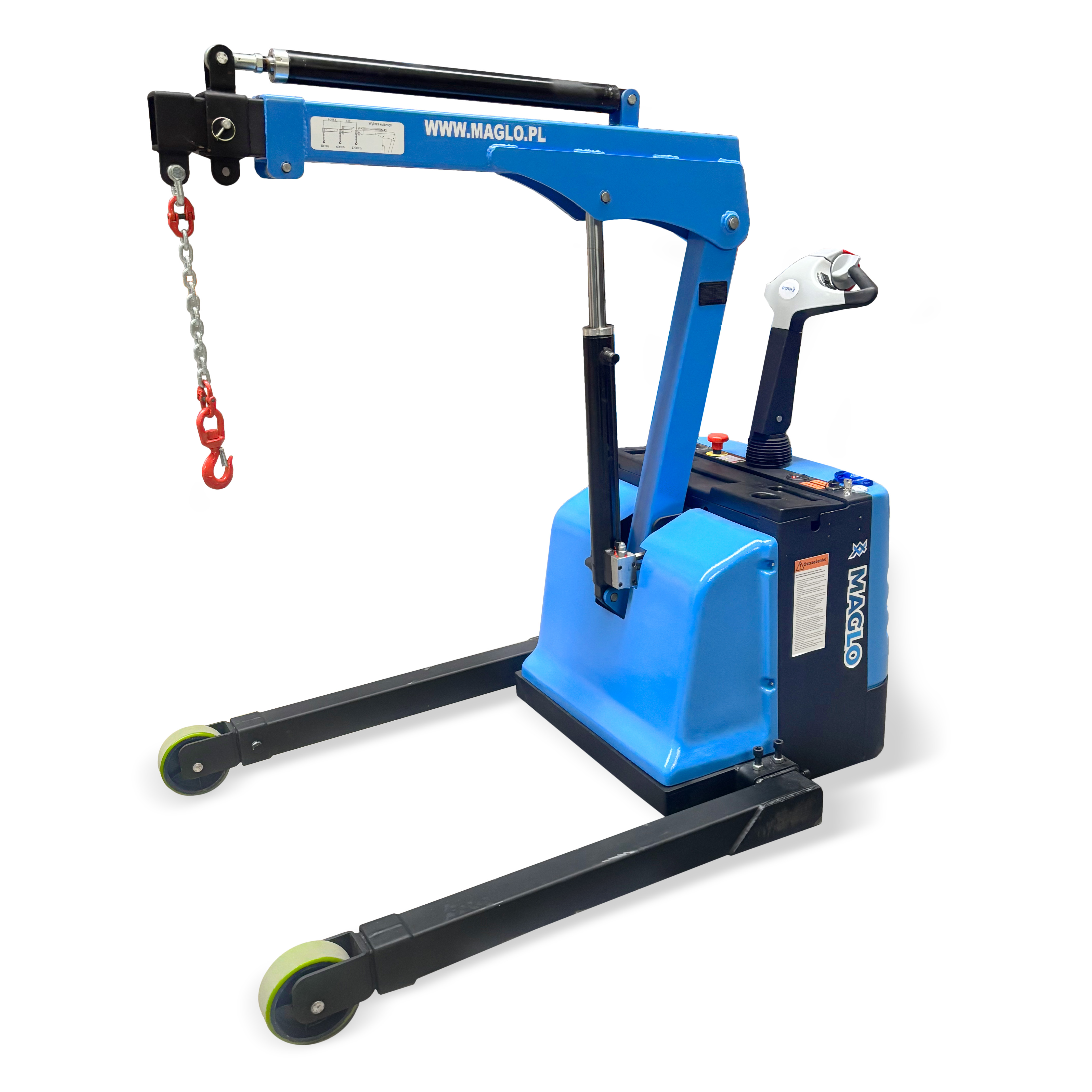 Żuraw samojezdny Maglo MZW12T z poszerzonym rozstawem wideł to kompaktowe i wszechstronne urządzenie zaprojektowane do podnoszenia, transportu i precyzyjnego manewrowania ładunkami. Dzięki elektrycznemu napędowi pracuje cicho i wydajnie idealnie sprawdzając się w halach produkcyjnych, magazynach i warsztatach. Regulowany wysięgnik, intuicyjne sterowanie dyszlem oraz opcjonalny pilot zapewniają komfort i pełną kontrolę nad urządzeniem. To niezawodne narzędzie, które łączy funkcjonalność, bezpieczeństwo i łatwość obsługi.