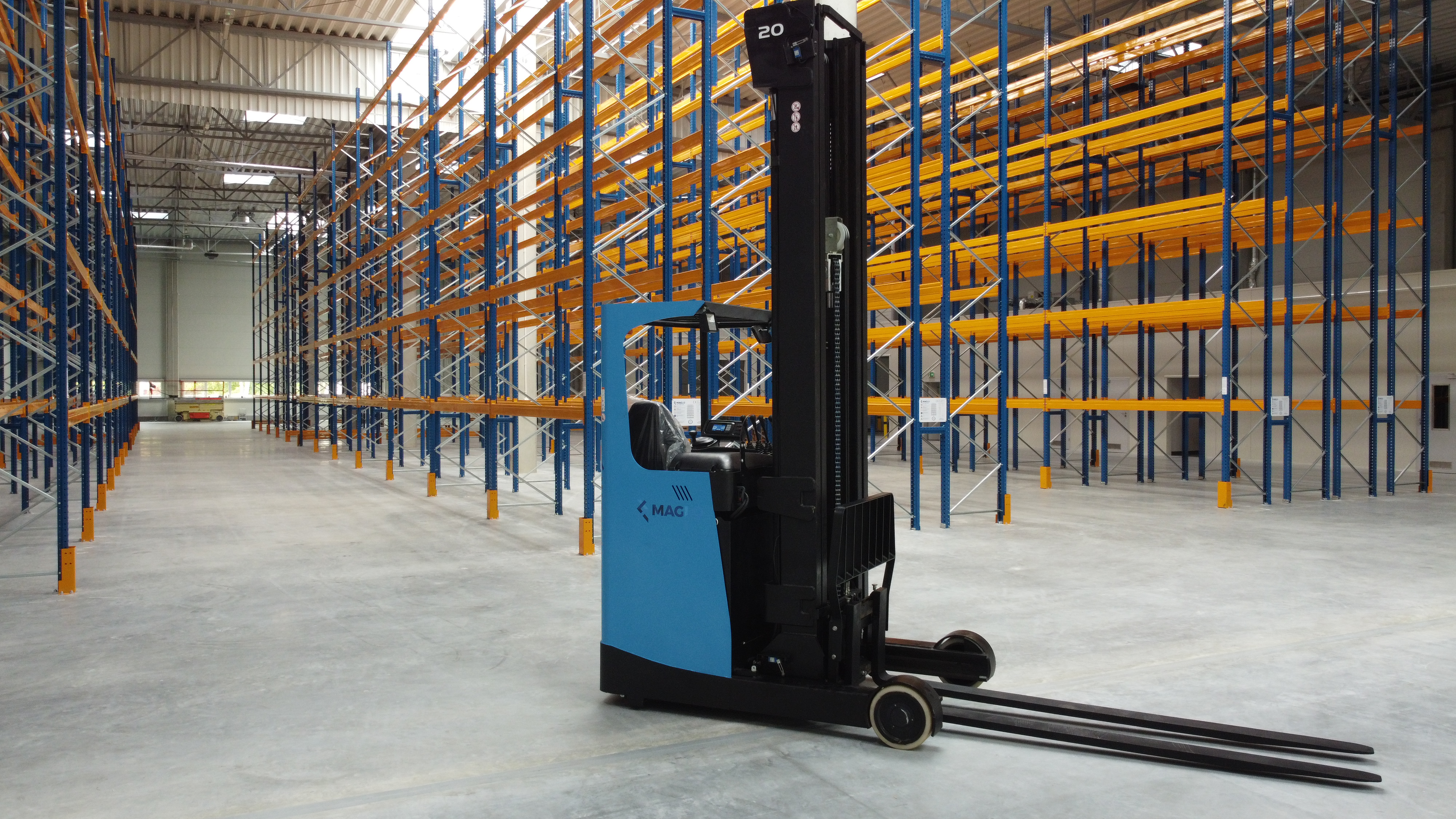 Regały magazynowe 3000 Miejsc paletowych wysokość składowania 9,0m, wózek wysokiego składu (reach truck) 2,0T